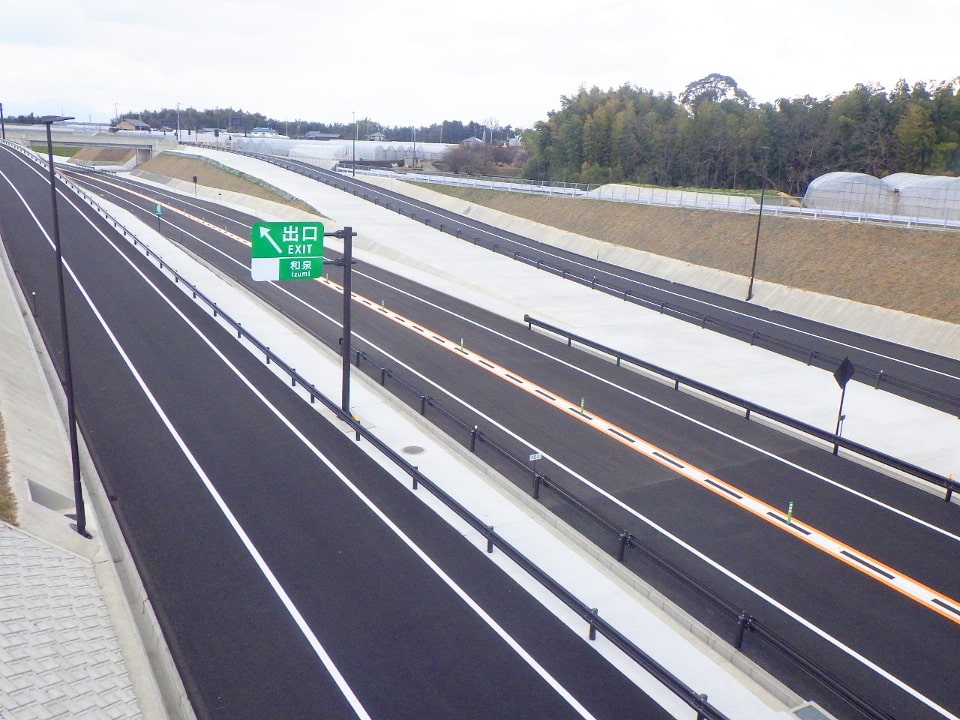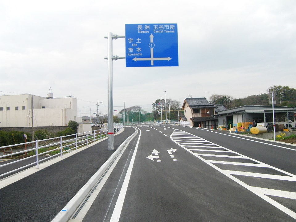 交通事故の減少や道路利用者の安全性向上を目的として、標識や車止め、視線誘導標、車線分離標などの交通安全対策工事を行っています。