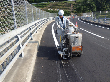 道路に描かれた区画線や交通安全施設全般の設置や補修・メンテナンスなど 主に現場で実際施工する技術者